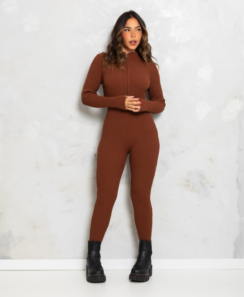 Descrição: Este macacão de tricot modal é a escolha perfeita para quem busca conforto e estilo. Com elastano e fechamento em zíper, ele se ajusta perfeitamente ao corpo, vestindo do 36 ao 44.